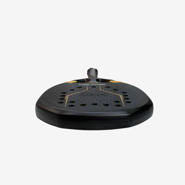 Su construcción destaca por el uso de Carbono 18K de alta densidad, lo que le otorga una rigidez estructural superior y una transferencia de energía explosiva. El núcleo de goma EVA Hard refuerza ese tacto firme, permitiendo un control milimétrico a altas velocidades, aunque exige una buena técnica para manejar su menor salida de bola pasiva. Incorpora un acabado rugoso tipo arena para imprimir efectos endiablados.